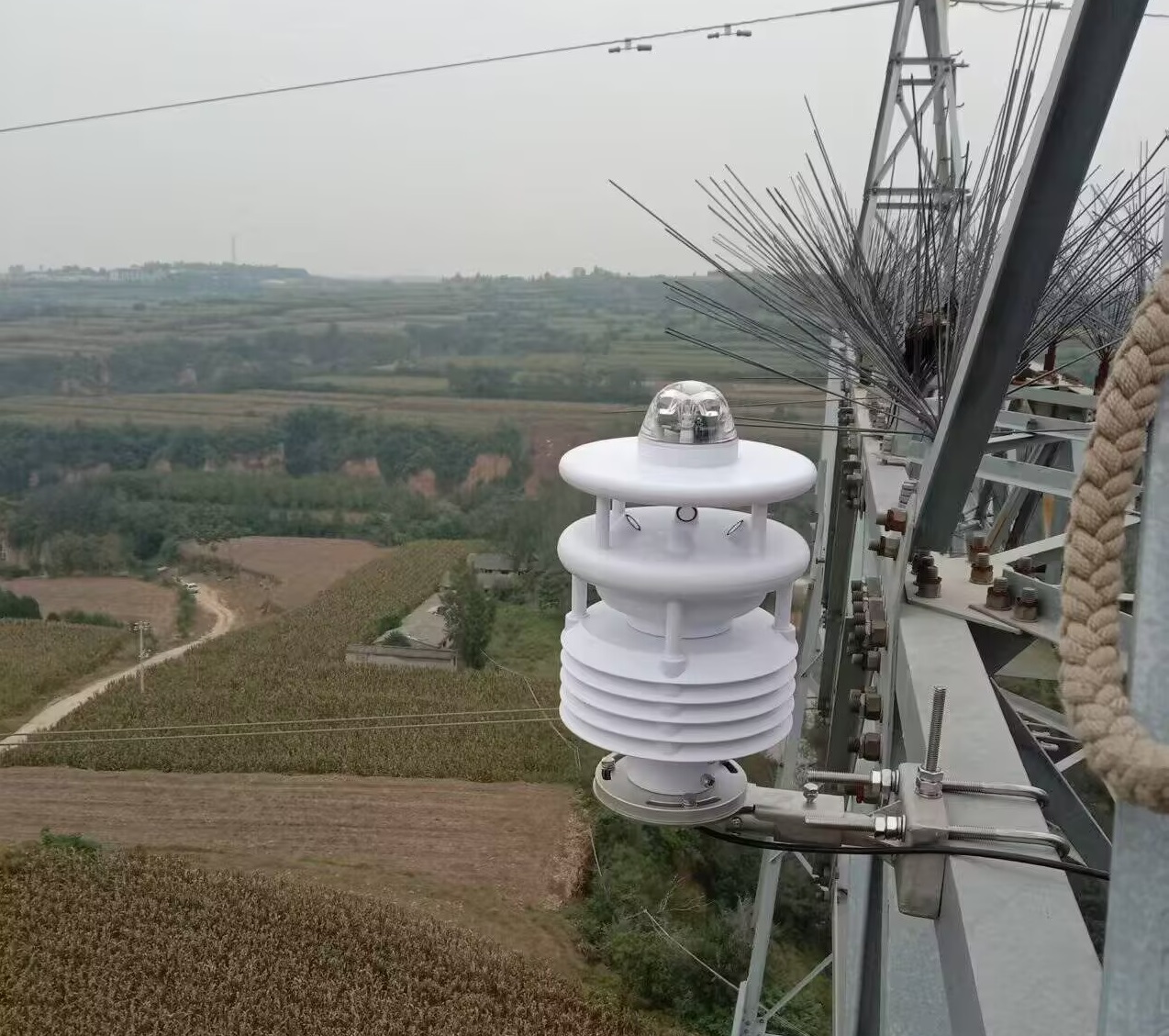 裝置核心就在于“數(shù)據(jù)算得準(zhǔn)、圖像看得清”。像給導(dǎo)線裝了“體檢儀”——高精度拉力傳感器捕捉導(dǎo)線荷載變化,傾角傳感器記錄導(dǎo)線傾斜角度,再結(jié)合溫濕度、風(fēng)速等微氣象數(shù)據(jù),通過方程精準(zhǔn)算出覆冰厚度和密。